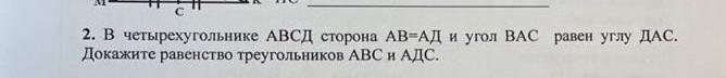 четырехугольнике АВСД сторова АВ АД и угол ВАС равен углу ДАС Докажите равенство треугол поп ABC AДС-