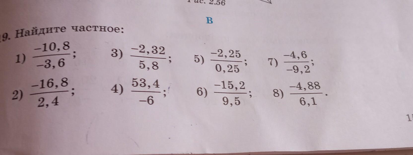 6) (-15,2)/9,5 = (-152)/95 = -1 57/95 = -1 3/5