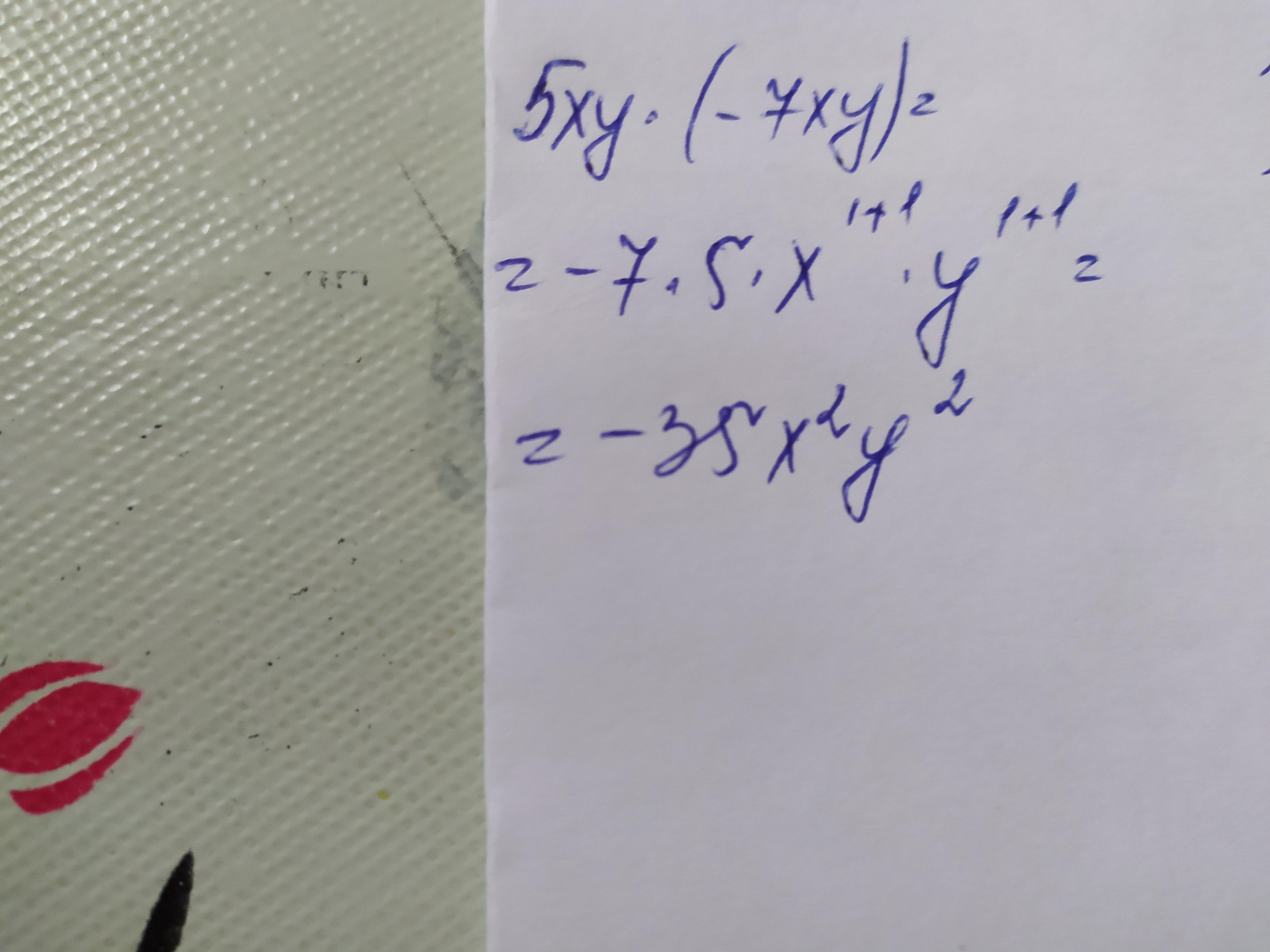 3. Помножити одночлени: 5ху і -7ху.