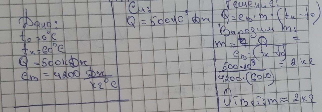 2.Воду какой массы можно нагреть от 0 до 50 градусов Цельсия. сообщив ей количество теплоты 400 кДж?