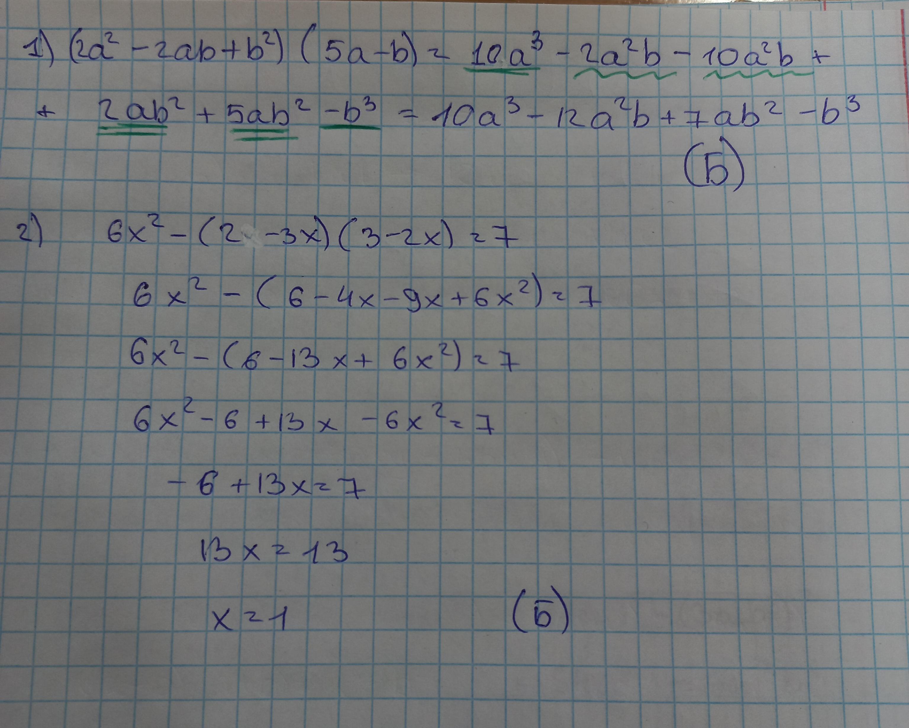 1)10a³-12а²b+7ab²-b³ (Б)