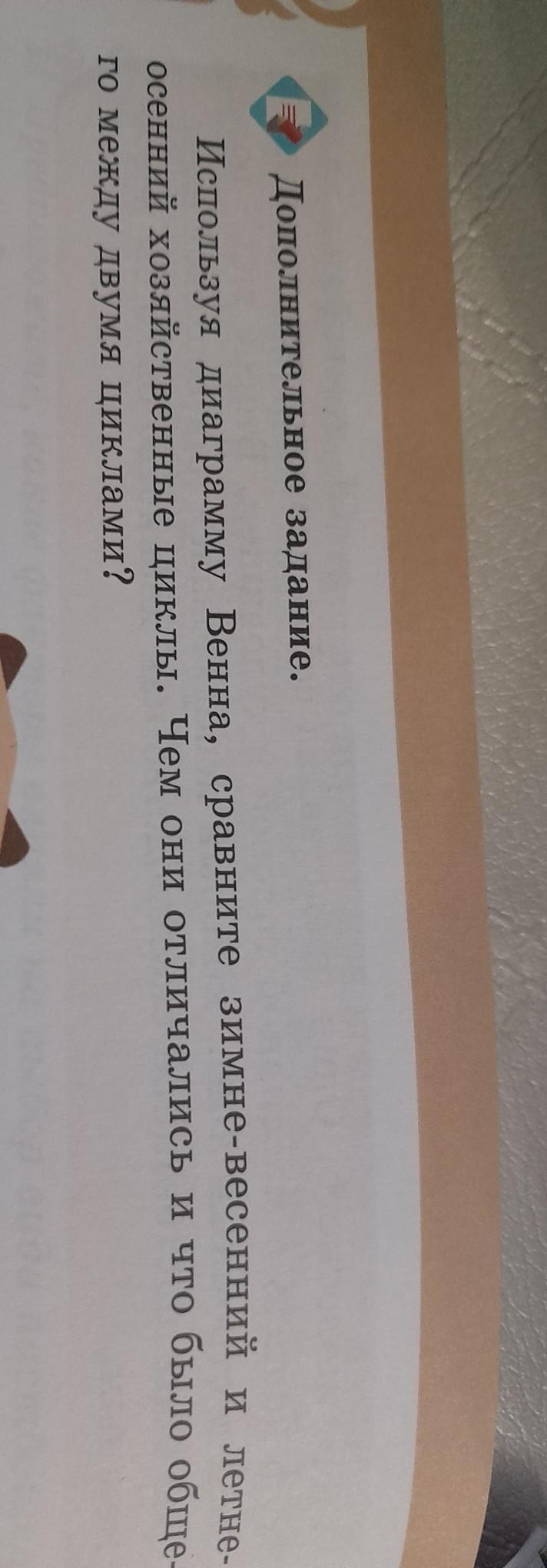 Дополнительное задание. Используя диаграмму Венна, сравните зимне-весенний и летне- осенний хозяйственные циклы. Чем они отличались и что было обще- го между двумя циклами?