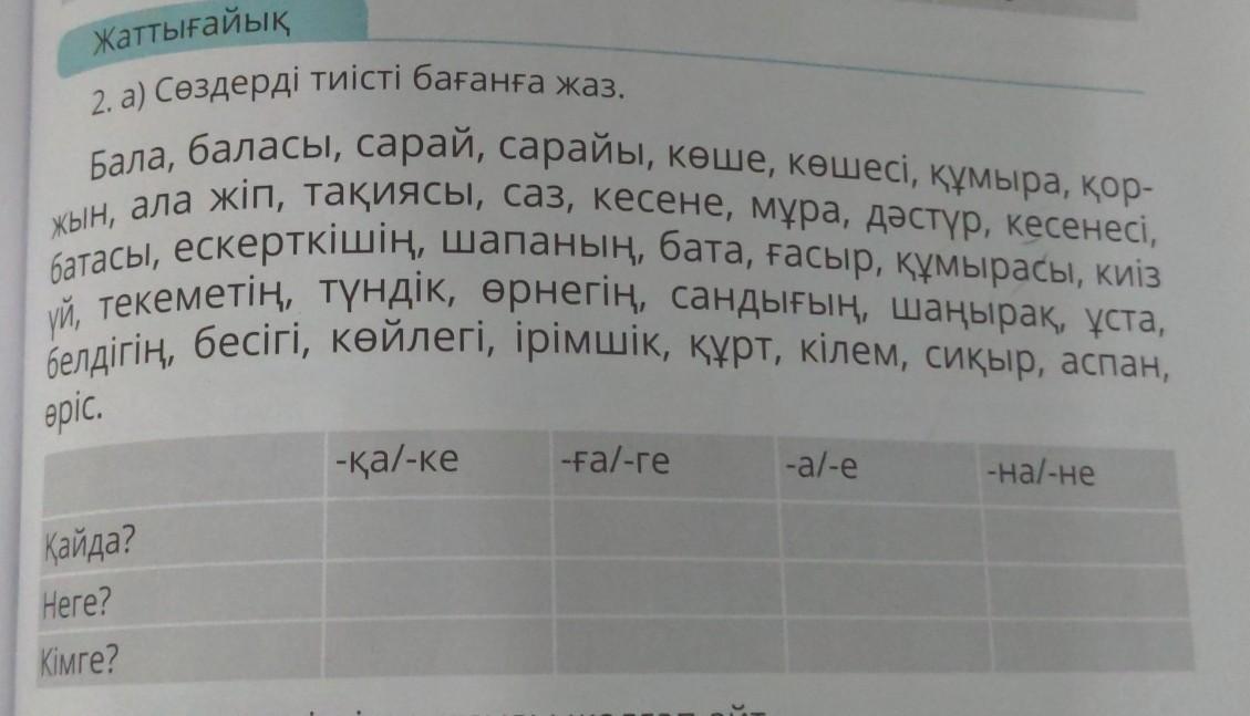 Балаға, баласына, сарайға, сарайына, көшеге, көшесіне, құмыраға,қоржынға, ала жіпке, тақиясына, сазға, кесенеге, мұраға, дәстүрге, кесенесіне, батасына, ескерткішіңе, шапаныңа, батаға, ғасырға, құмырасына, киізге, үйге, текеметіңе, түндікке, өрнегіңе, сандығыңа, шаңыраққа, ұстаға, белдігіңе, бесігіне, көйлегі