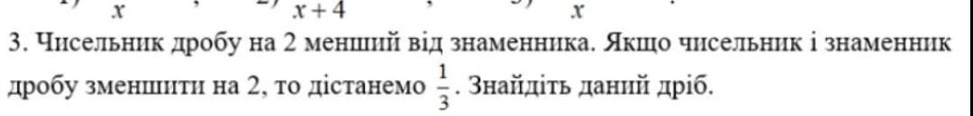 3. Чисельник дробу на 2 менший от знаменника. Якщо номерник и знаменник