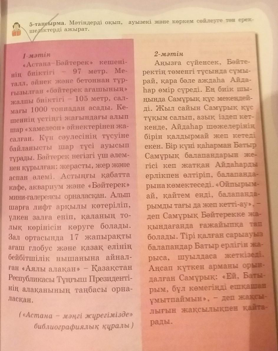 5-тапсырма. Мәтіндерді оқып, ауызекі және көркем сөйлеуге тән ерек-