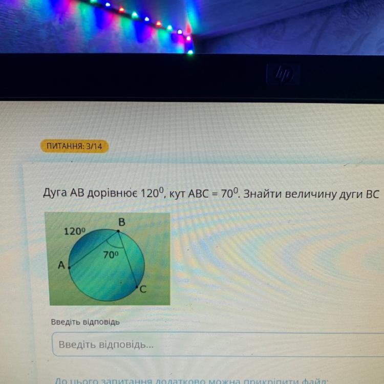 Дуга ВС=360-(140+120)=100 градусов