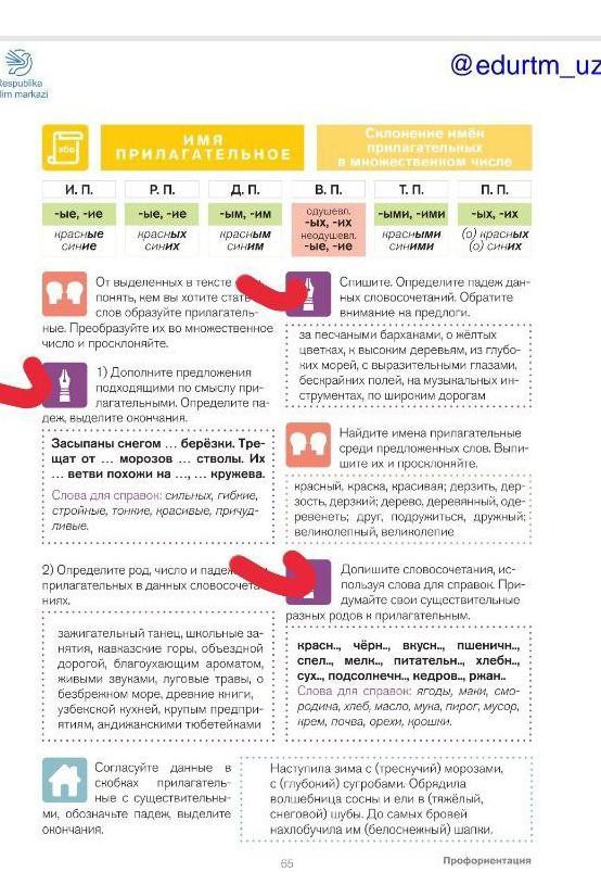 2) Песчаными барханами-Т.п; о жёлтых цветках-П.п; к высоким деревьям-Д.п; из глубоких морей-В.п; с выразительными глазами-Т.п; бескрайних полей-Р.п; На музыкальных инструментах-П.п; по широким дорогам-Д.п