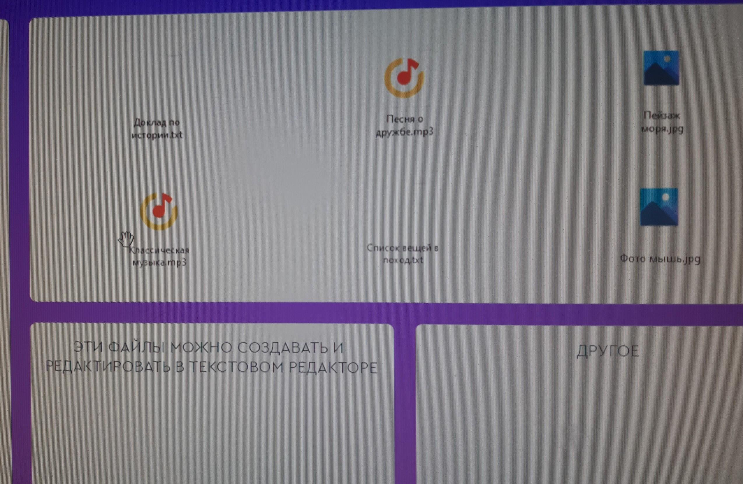 Какие файлы можно создавать и редактировать в текстовом редакторе, a какие нет? Раздели файлы на 2 категории.