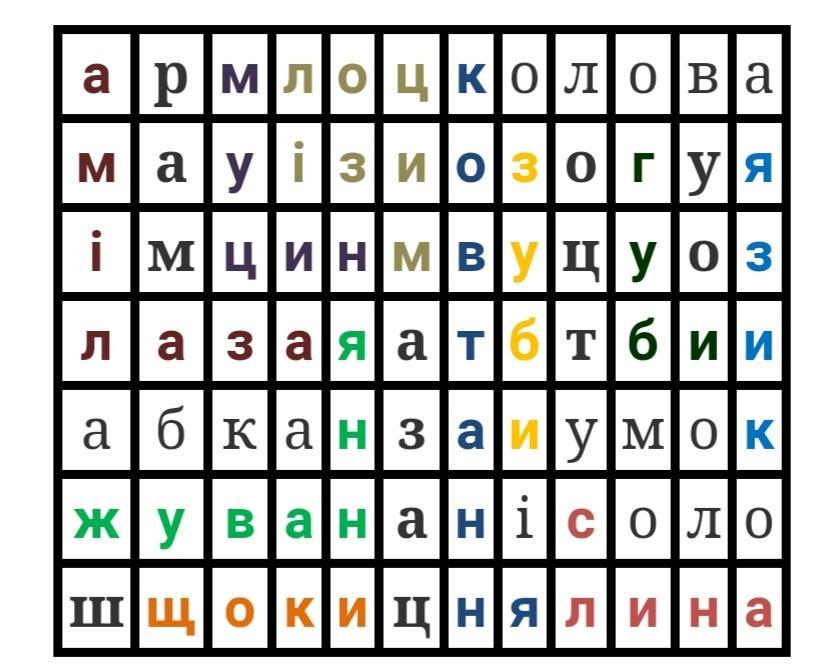 Перед вами один із різновидів кросвордів - угорський. Спробуйте відшукати 10 термінів, що стосуються ротової порожнини (слова можуть ламатися тільки під прямим кутом!) помогите пожалуйста