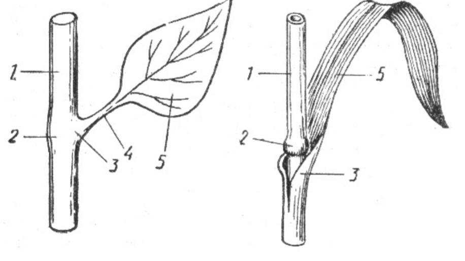 1) стебло 2) основа листка 3) незнаю 4)черешок 5)