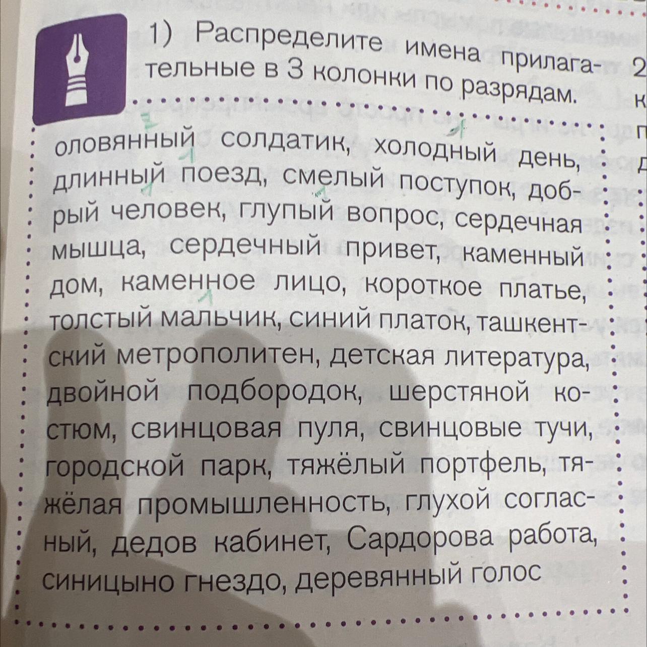 Распределить прилагательные по разрядам: