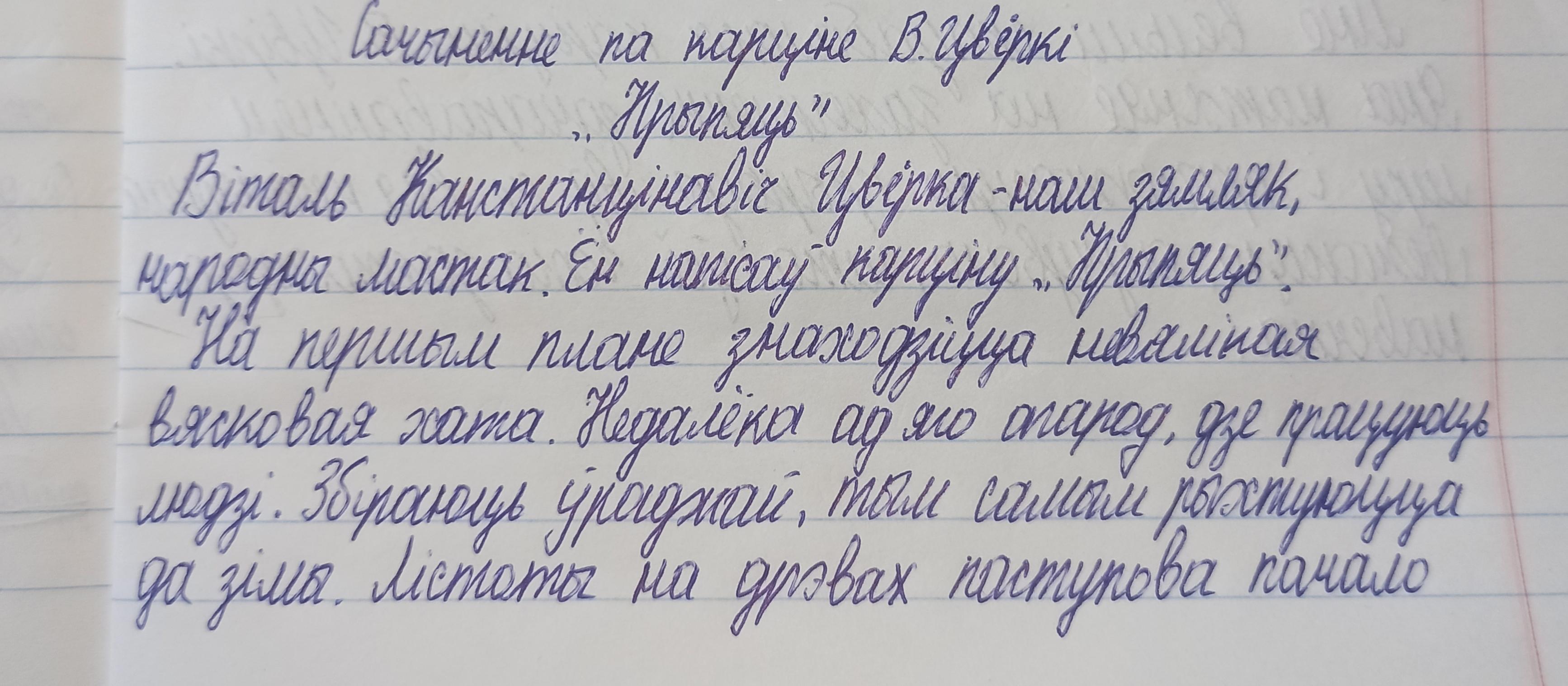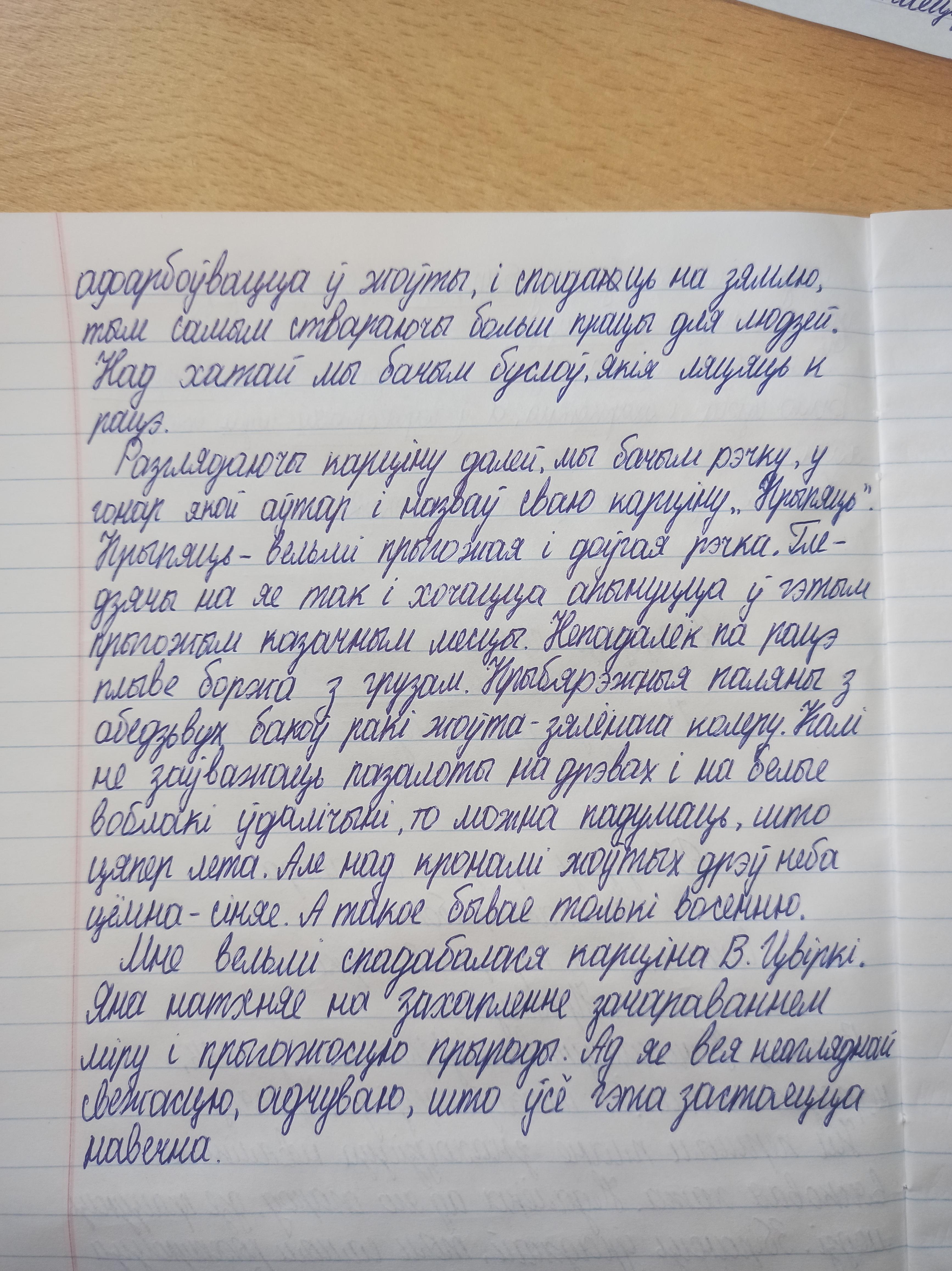 Сачыненне па картине В. Цвіркі "Прыпяць". На белорусском языке