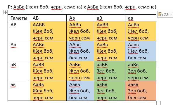 Р: АаВв (желт боб. черн. семена) х Р: АаВв (желт боб. черн. семена)