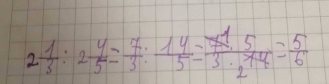 2целых 1/3 и 2 4/5 переводим в неправильную дробь , получаем : 7/3 поделить на 14/5. Делим. получается 5/6