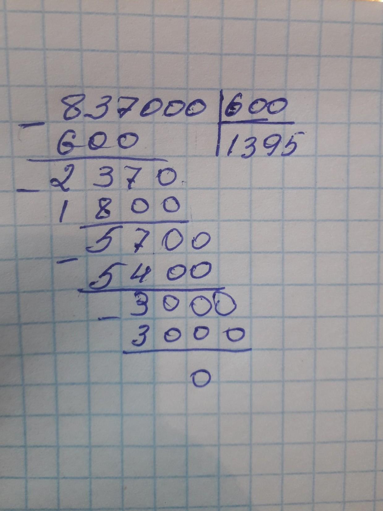 Реши столбиком 837000:600 скиньте фото где вы сами написали столбиком пж столбикооом я решаю у меня получается по другому (