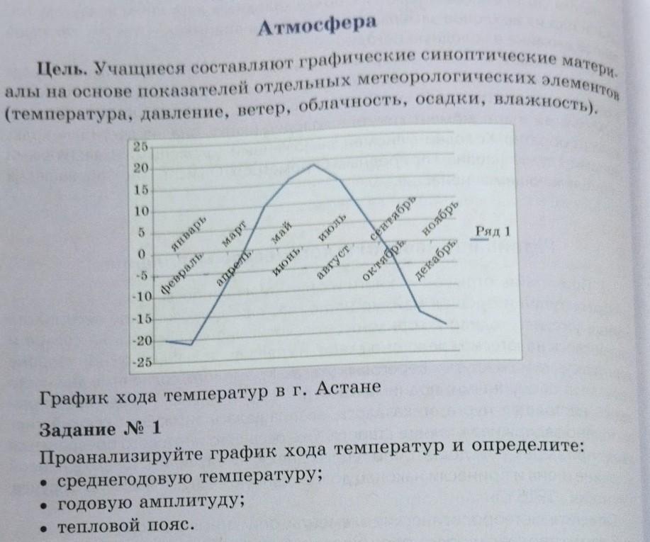 Цель. Учащиеся составляют графические синоптические матери. алы на основе показателей отдельных метеорологических элементо (температура, давление, ветер, облачность, осадки, влажность). 25- 20 yake 15 10. 5 -10 -15 -20 -25 январь Февраль март апрель май июнь июль авгус сентябрь октябрь декабрь Ряд 1 к о СИ