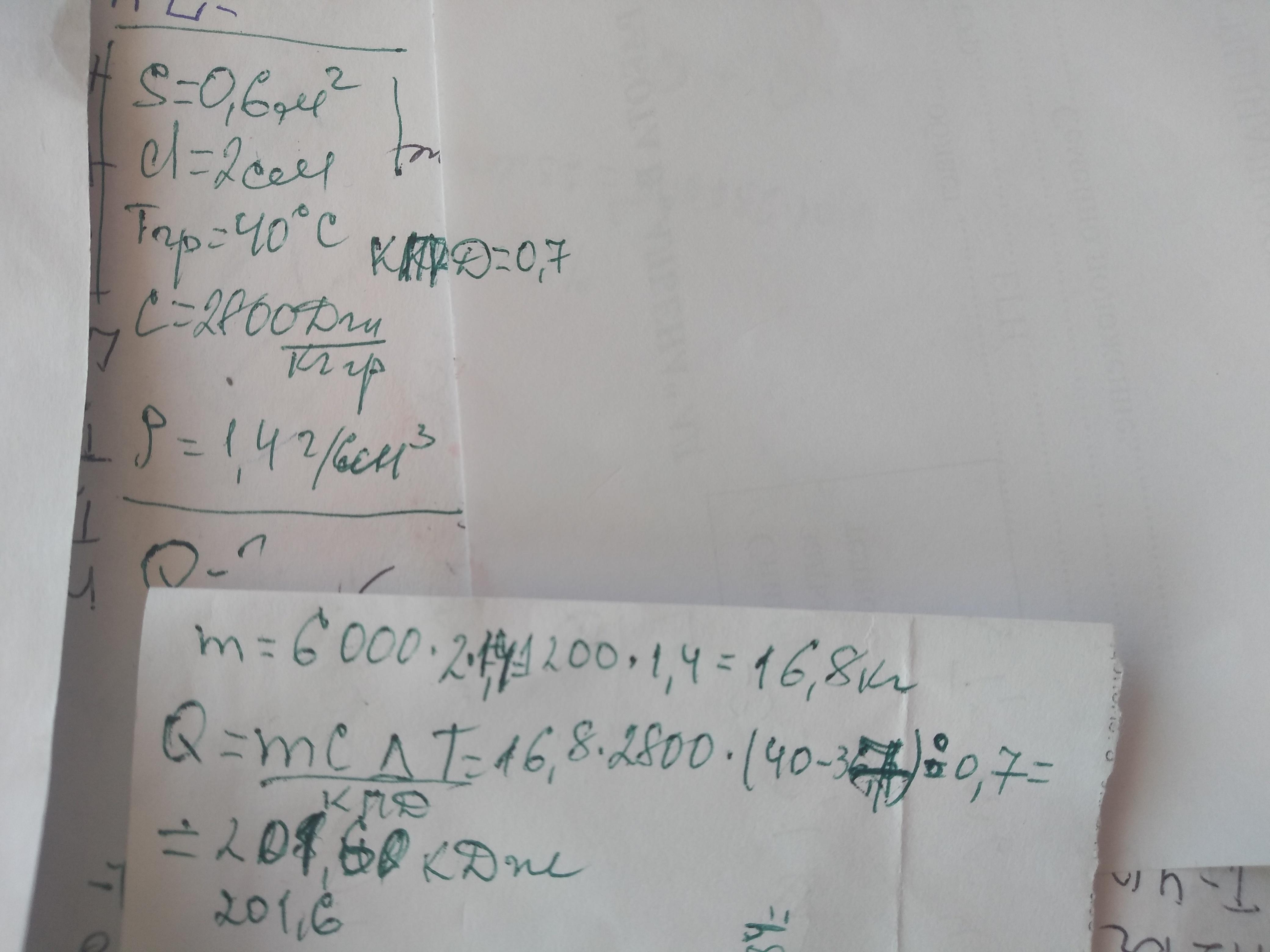 На участок тела больного площадью S = 0,6 м2 накладывается слой лечебной грязи толщиной d = 2 см при температуре Tгр = 40°С. Вычислить количество теплоты Q, полученной человеком, считая, что 30% тепловой энергии грязи теряется в окружающем пространстве. Удельная теплоемкость грязи равна с = 2800 Дж/(кг*град), плотность грязи ρ = 1,4 (г/см3), температура на поверхности участка тела больного, на который накладывается грязь Тт = 37°С.