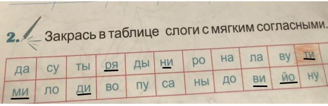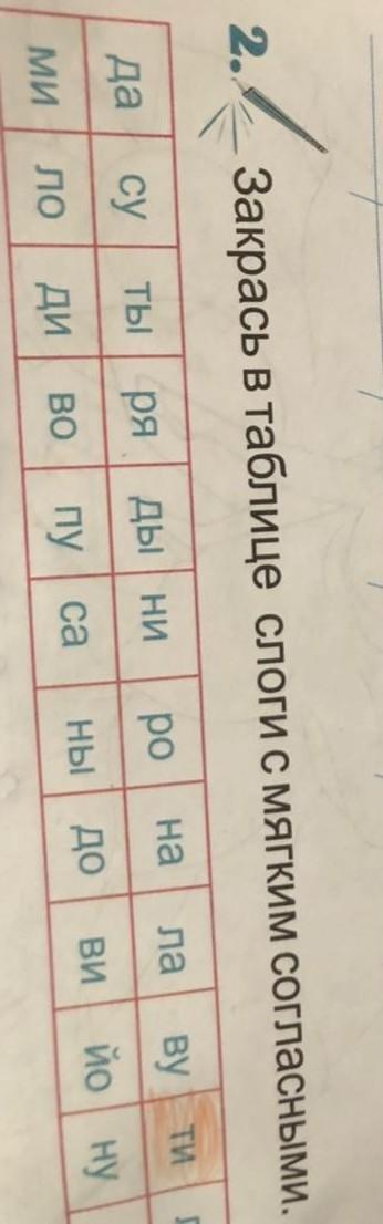 2. да Ми Закрась в таблице слоги с мягким согласными. ря ды ни на po ву ти ВО пу са НЫ ДО ЙО НУ су ЛО Ты ДИ ла ВИ