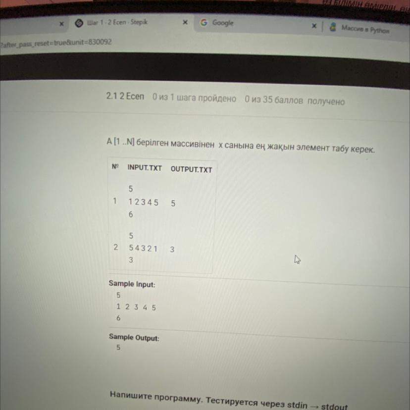 Вам нужно найти ближайший элемент к числу x в заданном массиве A[1 ..N].на питоне Пожалуйста это срочноо