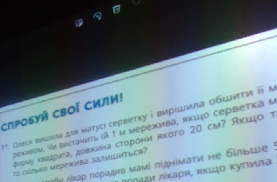 С СПРОБУЙ СВОЇ СИЛИ! 1. Олеся вишила для матусі серветку і вирішила обшити ї реживом. Чи вистачить iй 1 м мережива, якщо серветка форму квадрата, довжина сторони якого 20 см? Якщо то скільки мережива залишиться? лише перше
