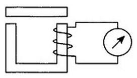 б) коли якорем замикають полюса магніту, магнітне поле посилюється і діє з більшою силою на стрілку гальванометра