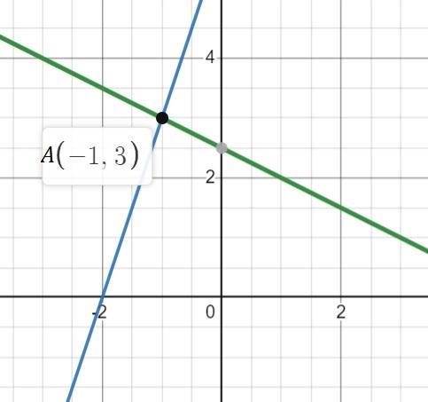 x=-1 => подставляем в одно из уравнений - находим ординату пересечения