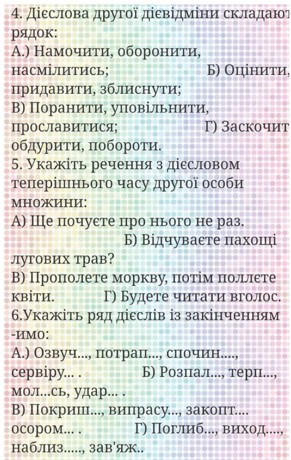 Відповідь: 4 не знаю 5 варіант а 6 варіант б