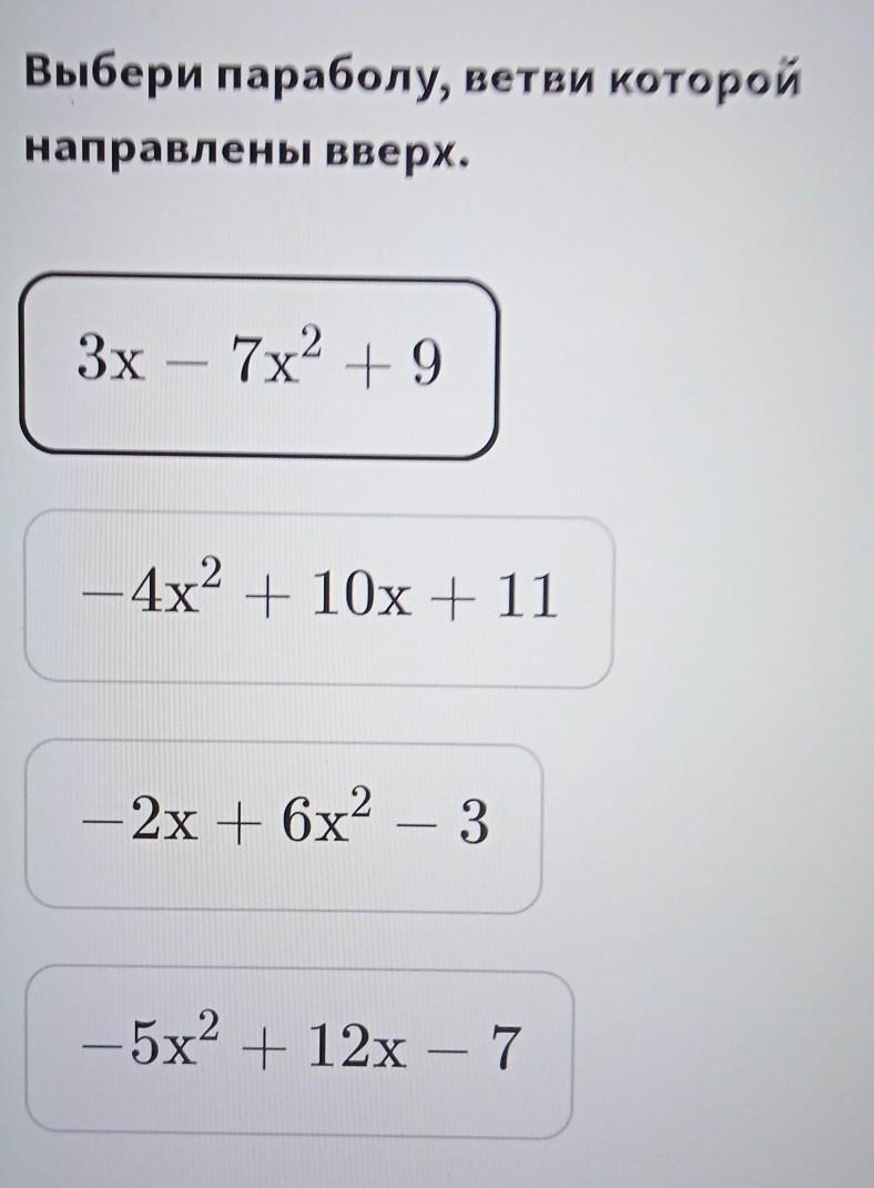 Если старший коэффициент больше нуля (a > 0), то ветви параболы напрaвлены вверх.