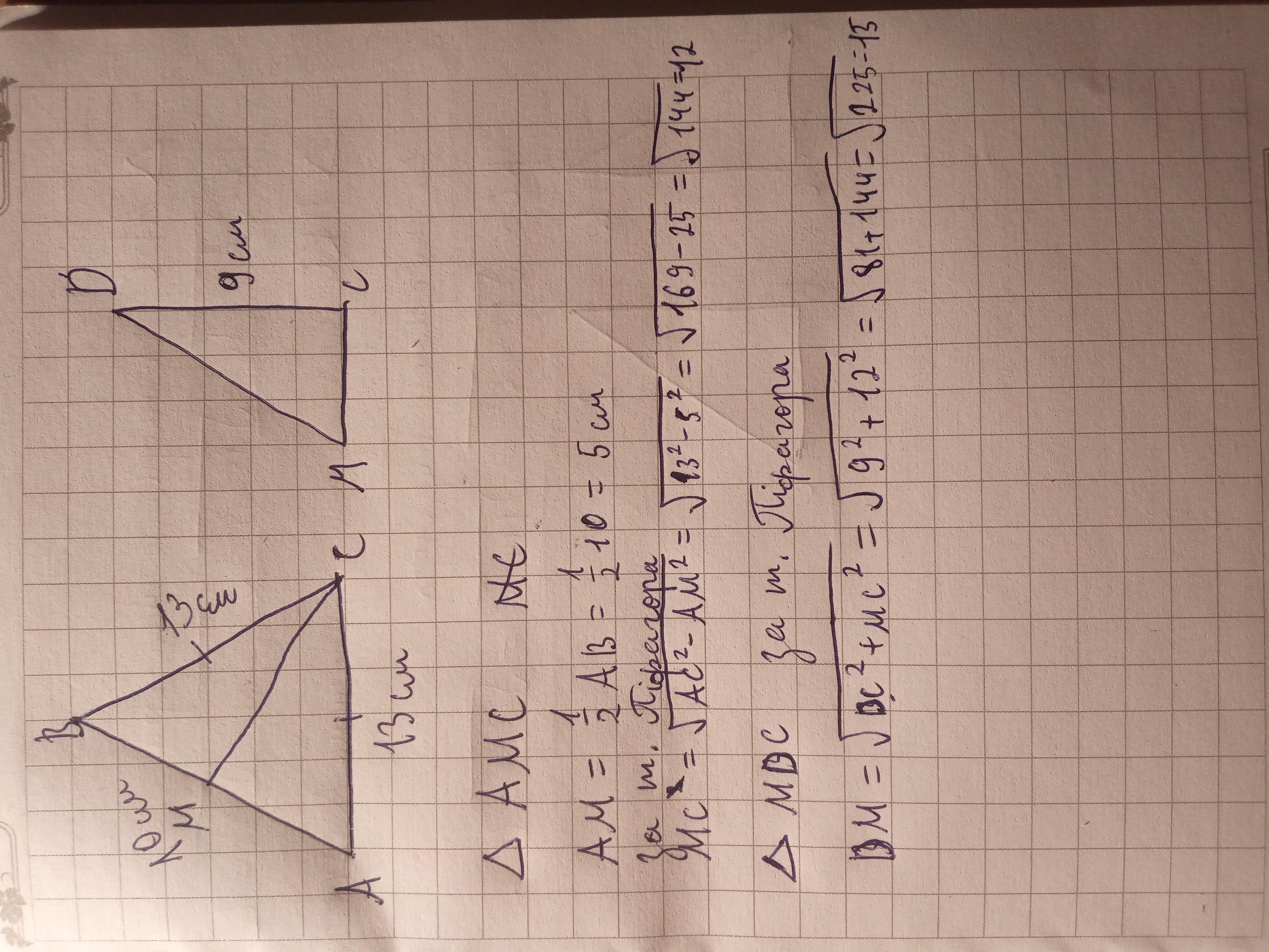 Из ΔAHB по теореме пифагора -