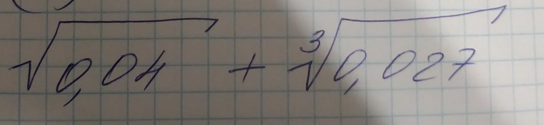 √0,04 + ³√0,027 = 0,2 + ³√0,3³ = 0,2 + 0,3 = 0,5