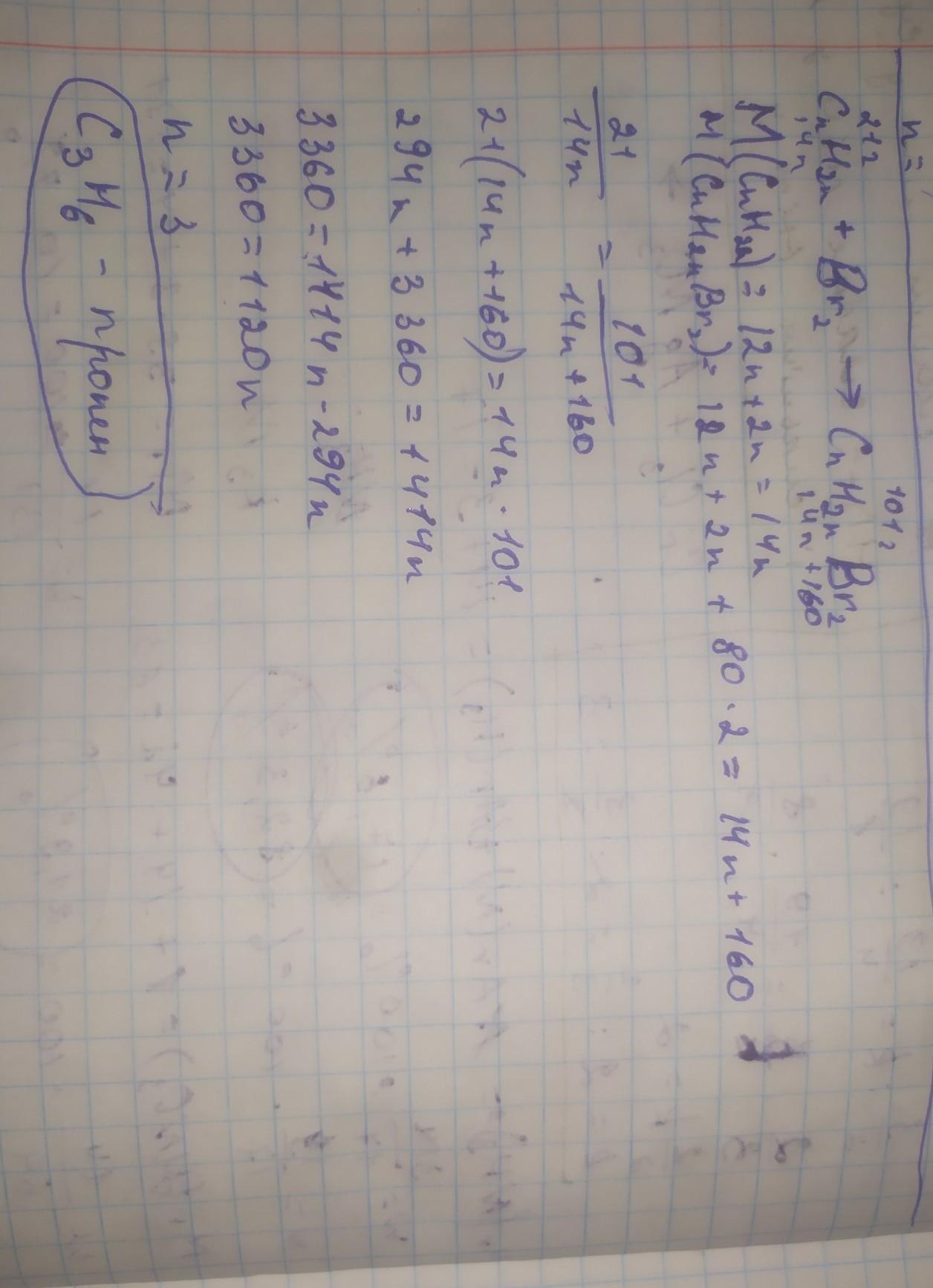 Під час пропускання ненасиченого вуглеводню масою21 г крізь надлишок розчину бромної води отримали101 г дибромопохідного цього вуглеводню. визначте формулу цього вуглеводню