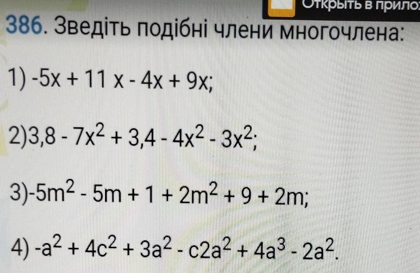 Срочно дам 20 баллов спам бан Зведіть подібні члени многочлена: 1) -5x + 11 x - 4x + 9x;