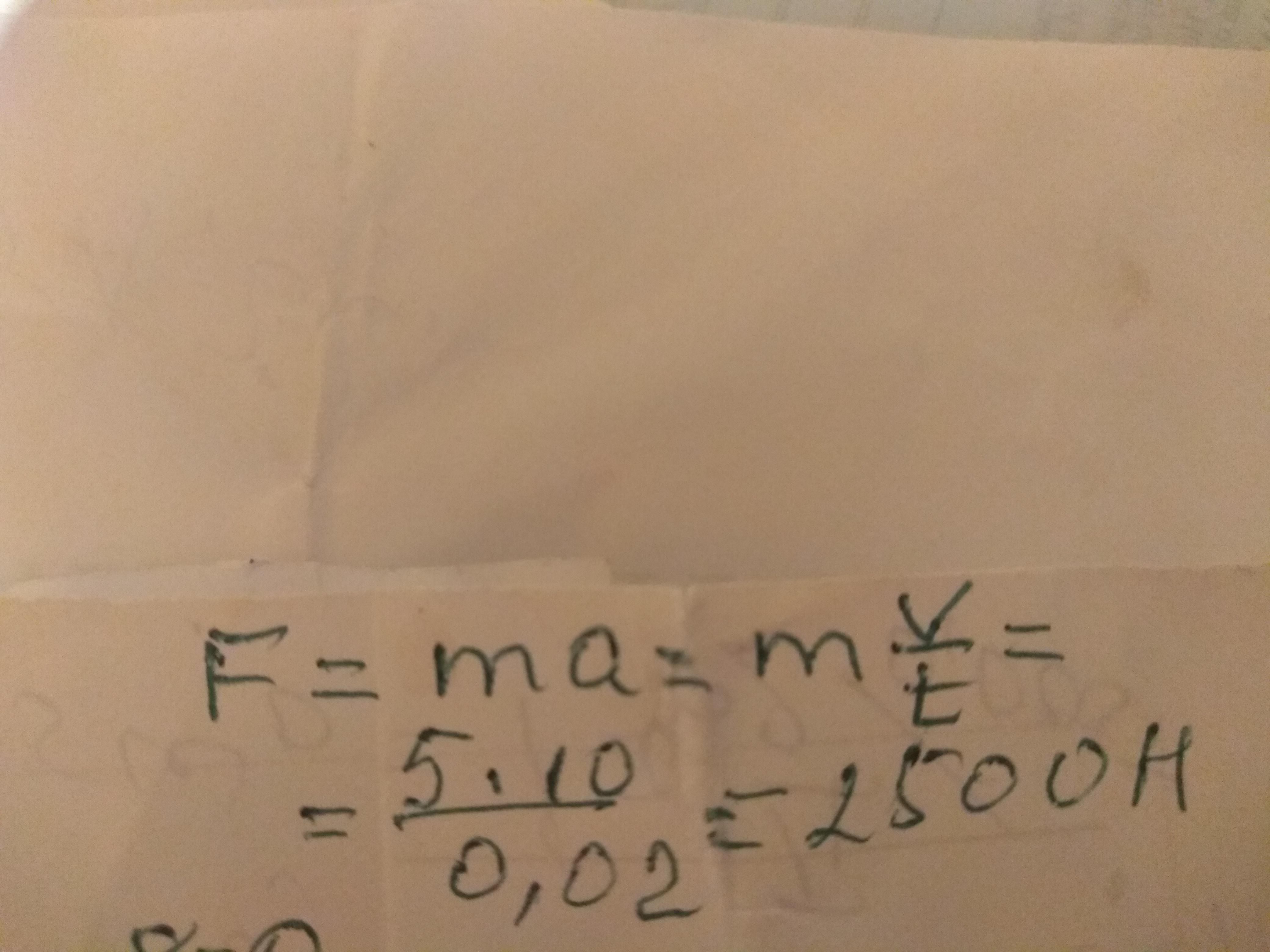 Тело с массой 5 кг развило скорость 10 м/с за 0,02 секунды. Если учитывать, что тело находится в движении, найдите Силу (F)