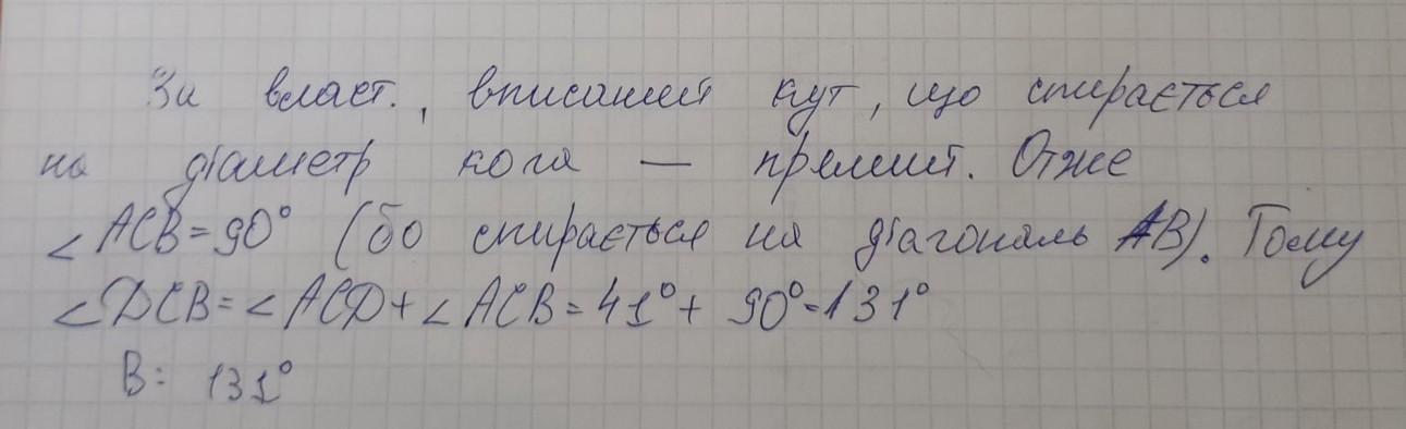 відповідь: кут DCB дорівнює 131°