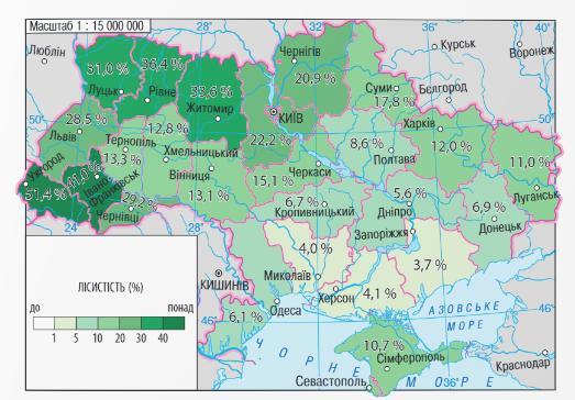 1) які області України мають найвищі та найнижчі показники лісистості.