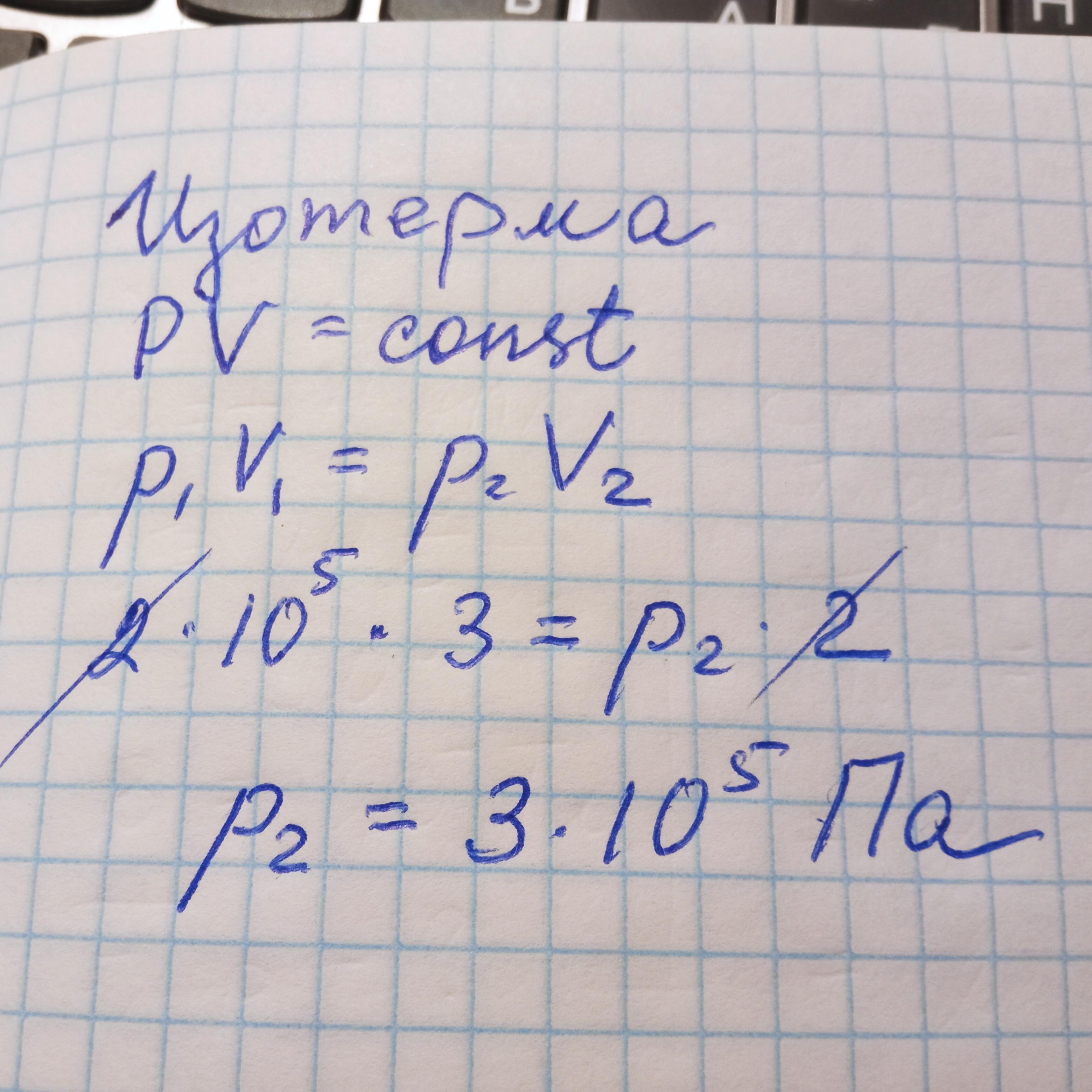 При сталій температурі стискають повітряну кулю від 3 л до 2 л. Визначити тиск повітря в кулі після стиску, якщо на початку він становив 2∙10^5 Па
