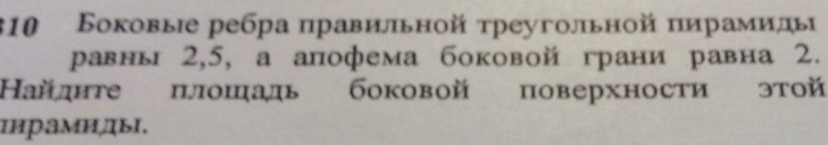 Рассмотрим прямоугольный треугольник, состоящий из апофемы, бокового ребра и половины стороны основания