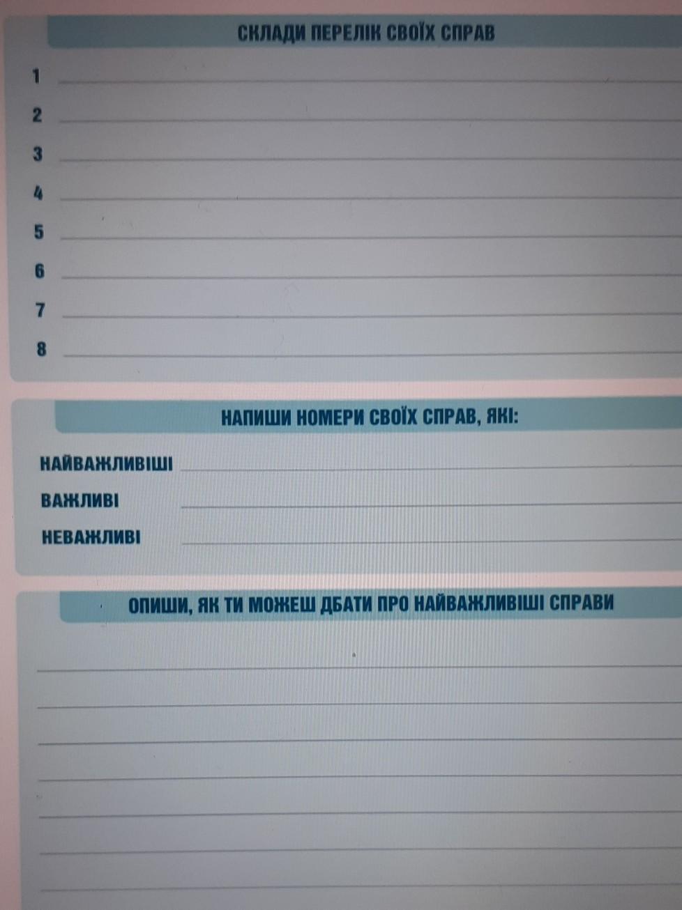 Відповідь:з 1 та 2 тобі треба написати чим ти займаєся а в 2 найважливіші та те чим ти можеш не займатися