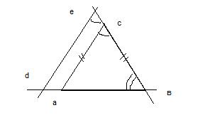 в треугольнике авс ас=вс.отрезки вс и ва продолжены за вершины с и а.на продолжениях отмечены точки e и d соответственно.известно,что de параллельна ас .докажите,что треугольник вde равнобедренный