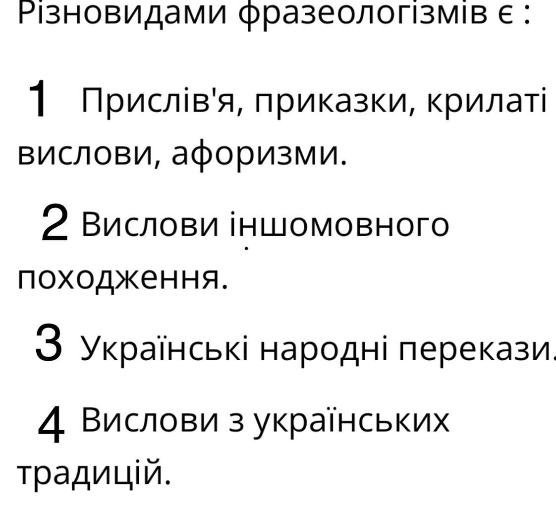 1) прислів’я, приказки, крилаті вислови, афоризми