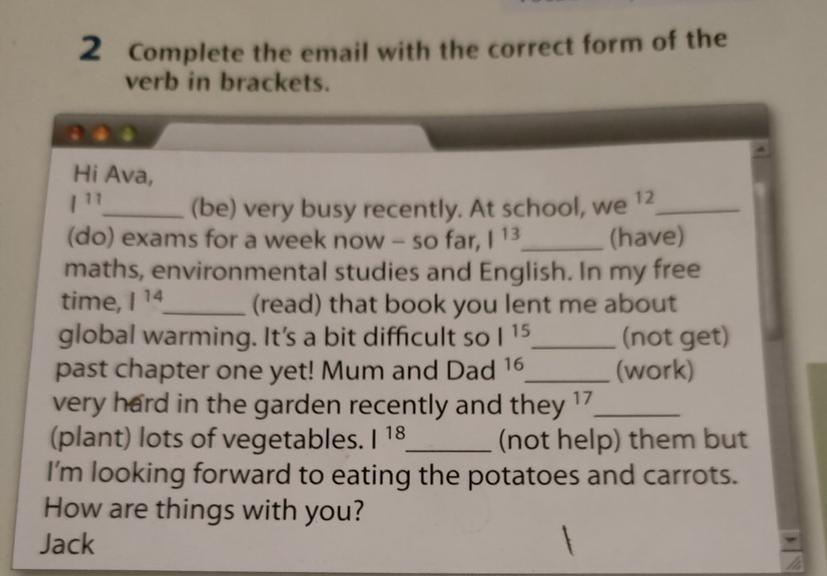 11.was.12.doed.13.had.14.read.15.wont get.16.working.17.planting.18.wont help