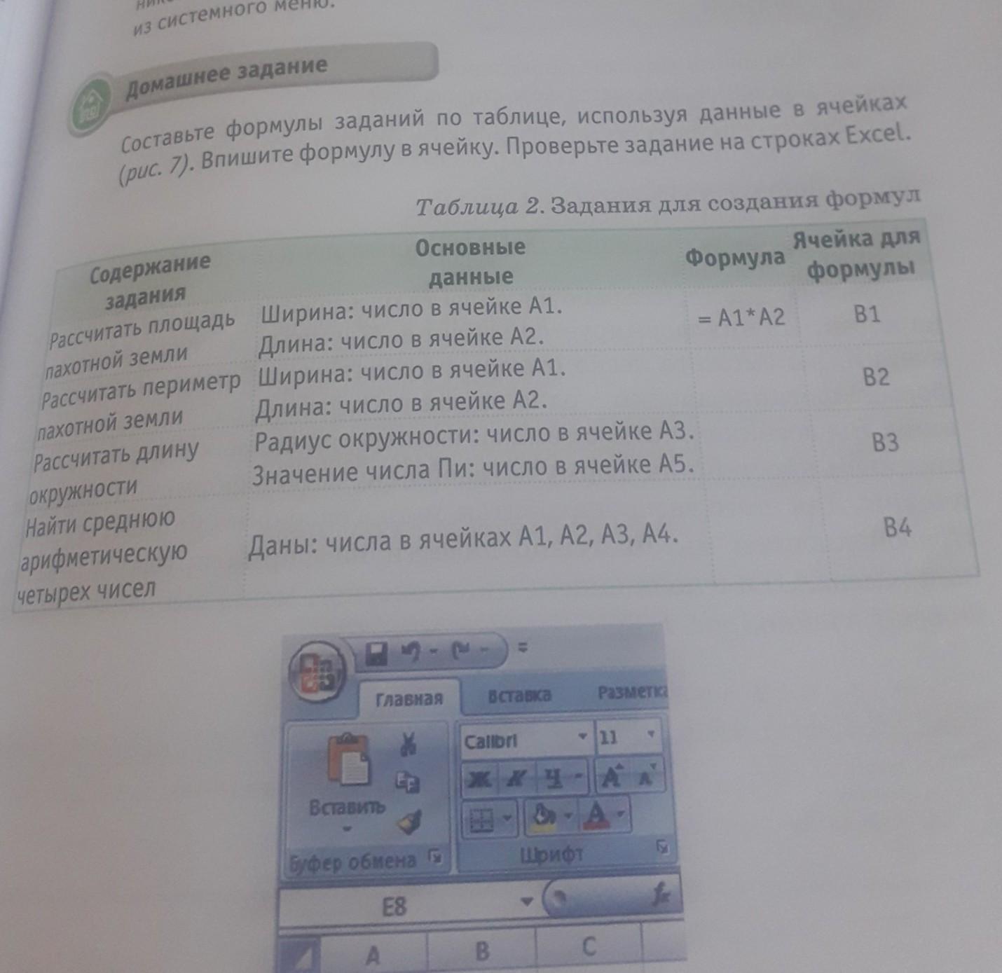 Составьте формулы заданий по таблице, используя данные в ячейках