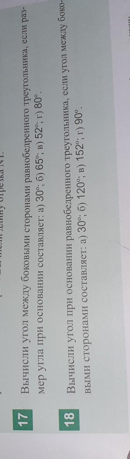 18) мы от суммы всех углов должны отнять известный нам угол и ответ поделить на 2 и тем самым получим угол при основании треугольника.