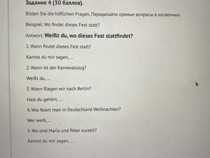 Bilden Sie die höflichen Fragen.Переделайте прямые вопросы в косвенные