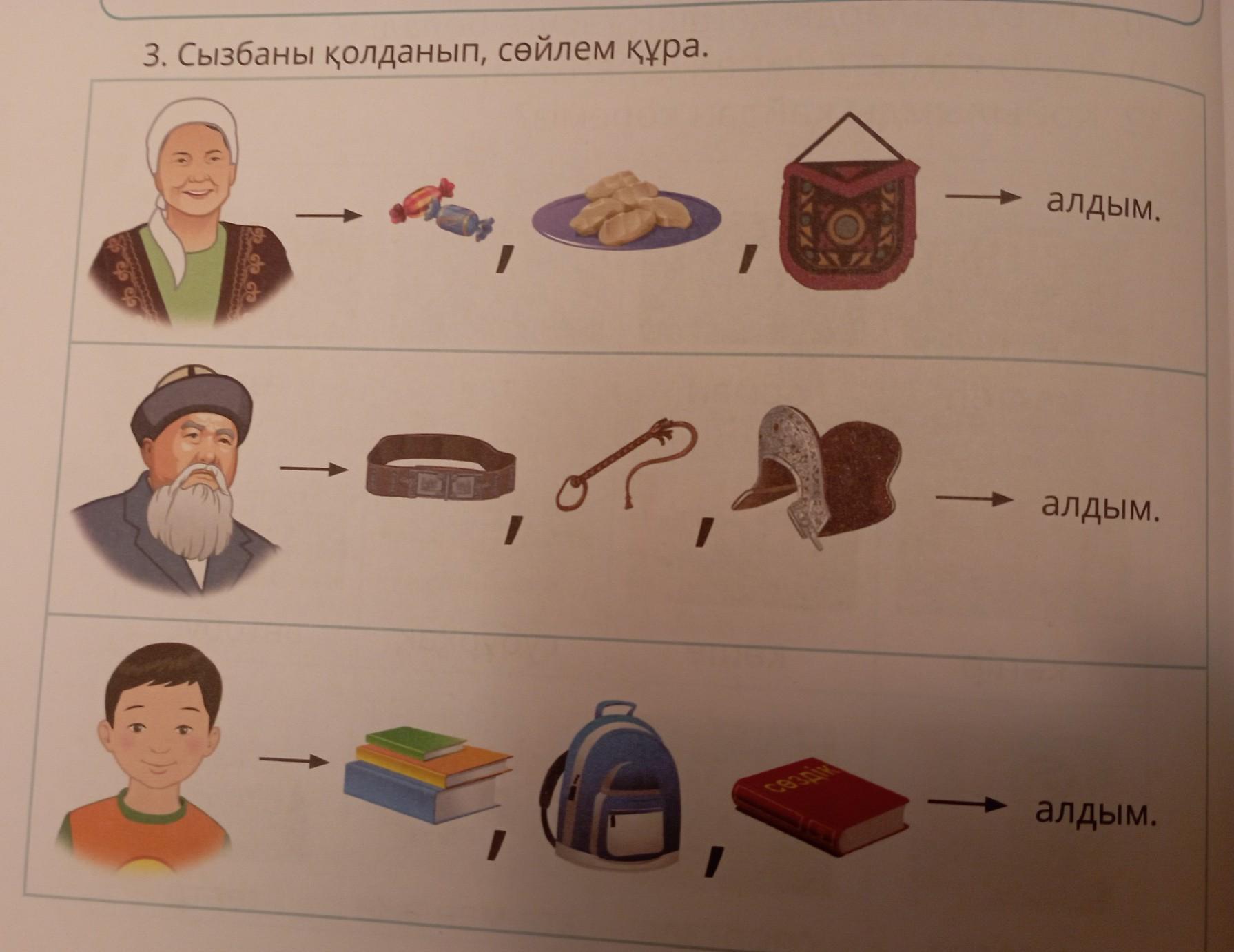 Ответ:1) әжемнен кәмпит пен тамақ салып алдым