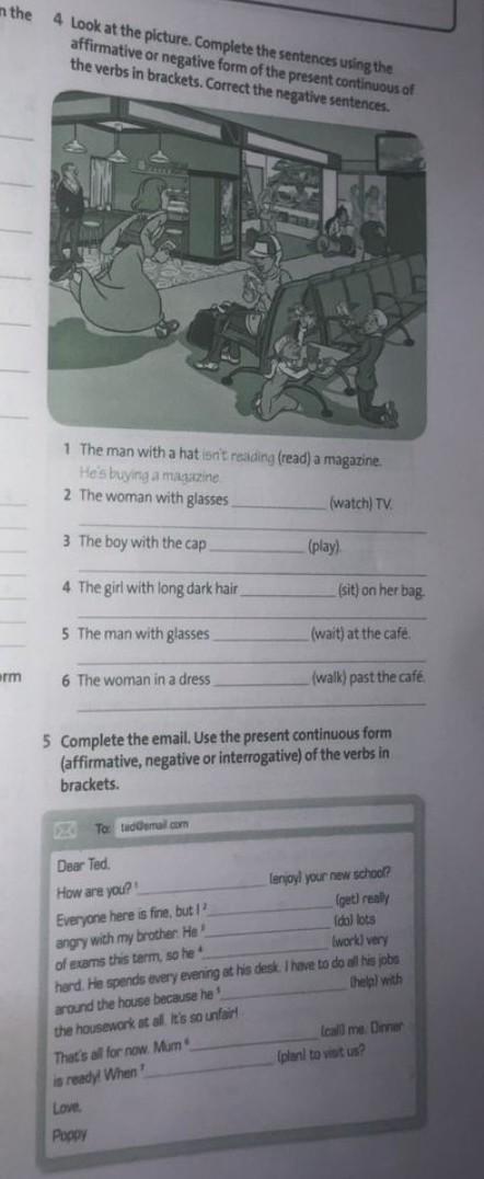 2.watching3.playing4.sitting5.waiting.6walking