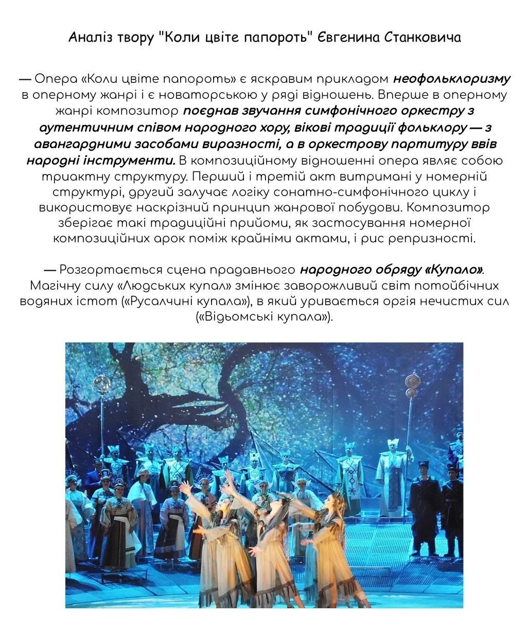 проаналізуй твір "Коли цвіте папороть" Євгена Станковича, за таким планом: - Чому твір "Коли цвіте папороть" Євгена Станковича належить до - фолк-опери ? - Який народний обряд зображено в фолк-опері "Коли цвіте папороть" Євгена Станковича ?