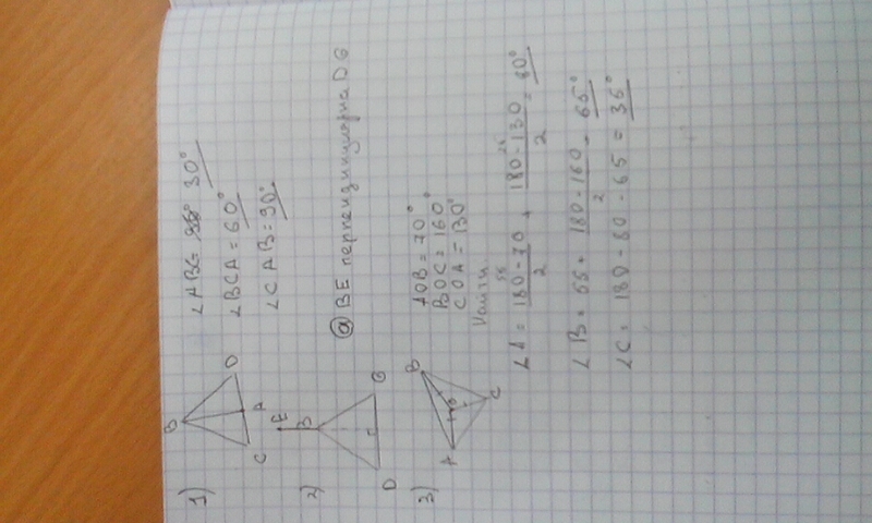 В равностороннем треугольнике DBC проведена высота BA.Найдите углы треугольника ABC
