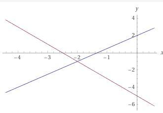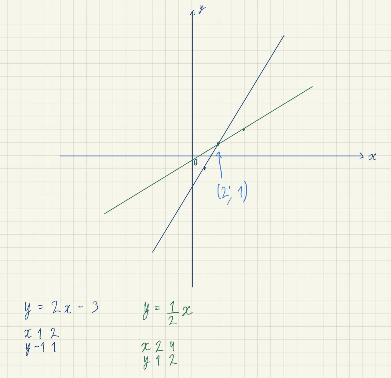 Найдите точки пересечённых прямых предварительно построив графических указаний линий функции 1) y =2x-3 и y=1/2x ;. 2) y=1,5x+2 и y = - 2x-5;