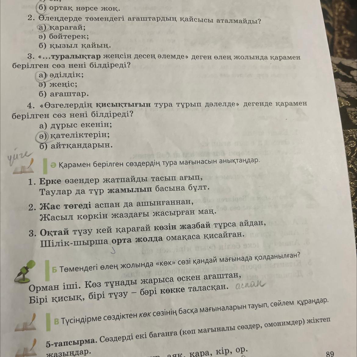 Ә Қарамен берілген сөздердің тура мағынасын анықтаңдар.